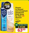 Shower To Shower Anti-Perspirant Deodorant Body Spray For Men Or Women-For 2 x 150ml